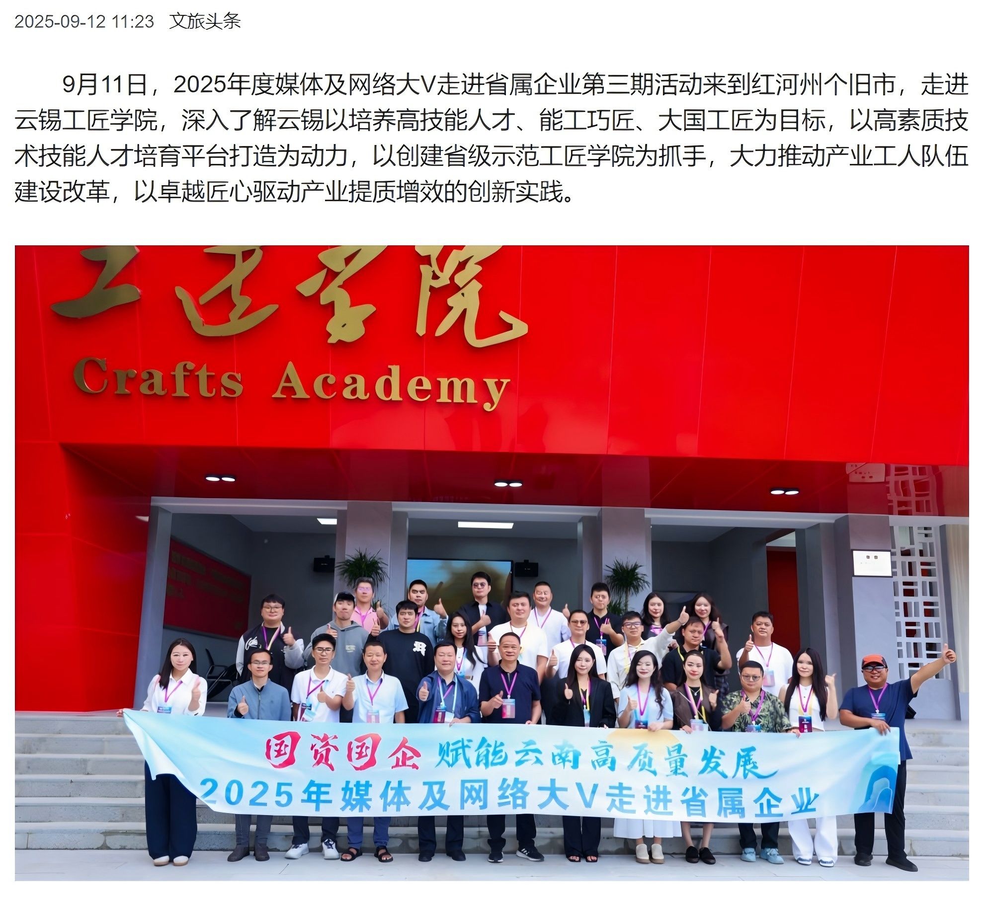 (云锡工匠体验官走进省属企业 来源:诗歌文旅)