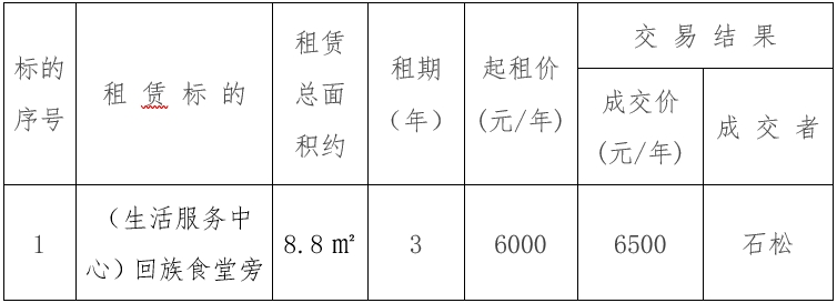一、租赁标的交易结果