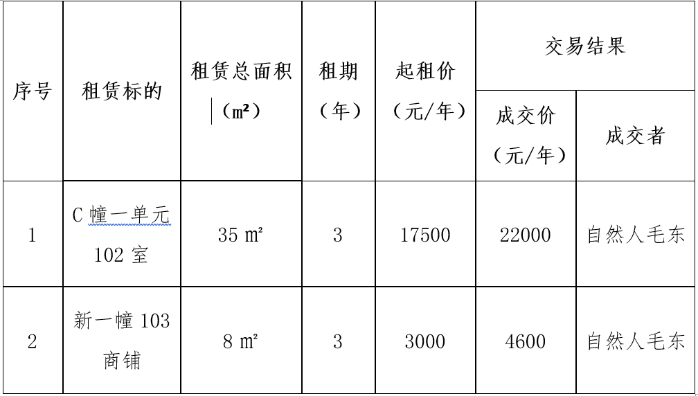 一、租赁标的交易结果