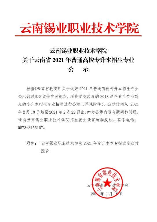 关于云南省2021年普通高校专升本招生专业公示