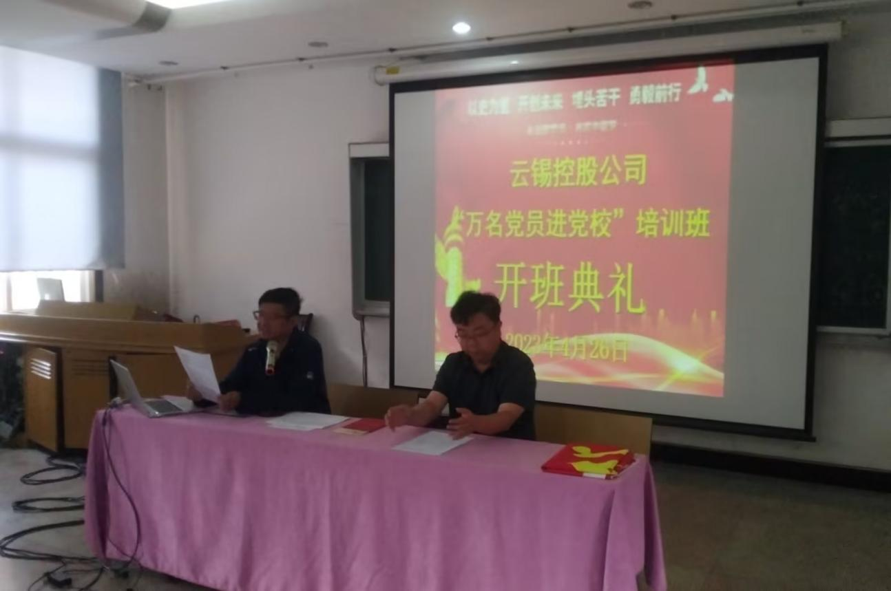 根据控股公司《关于开展深入学习宣传贯彻党的二十大精神“万名党员进党校”培训的通知》要求,云锡党群工作部,于2023年4月26日在云锡党校举办了“控股公司深入学习宣传贯彻党的二十大精神“万名党员进党校第10期培训班”开班典礼,云锡党校培训部主任蔡剑同志参加了“万名党员进党校培训班”开班典礼,并作动员讲话。