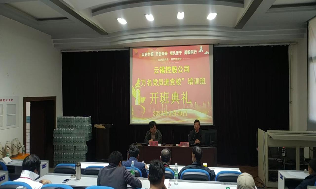 根据控股公司《关于开展深入学习宣传贯彻党的二十大精神“万名党员进党校”培训的通知》要求,云锡党群工作部,于2023年3月20日在云锡党校举办了“控股公司深入学习宣传贯彻党的二十大精神“万名党员进党校第1期培训班”开班典礼,云锡党校培训部主任蔡剑同志参加了“万名党员进党校培训班”开班典礼,并作动员讲话。
