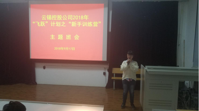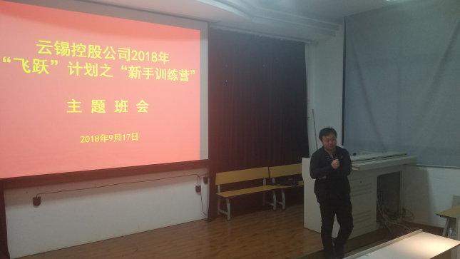 根据控股公司《关于举办2018年度控股公司“飞跃”计划之“新手训练营”培训的通知》要求,云锡人才培训中心于2018年9月14日,在云锡人才培训中心举办了“2018年度控股公司‘飞跃’计划之‘新手训练营’培训班”开班典礼,控股公司组织人力资源部副部长鲍伟岗同志、干部科主管俞鑫同志;云锡人才培训中心主任李蕾同志参加了开班典礼,并作动员讲话和对提要求。