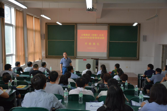 根据控股公司《关于举办2018年度云锡集团(控股)公司科技管理培训的通知》要求,云锡人才培训中心与战略合作伙伴——昆明高博教育信息咨询有限公司,于2018年8月24日-26日,在云锡人才培训中心举办了“控股公司科技管理培训班”开班典礼,控股公司科技和运营管理部主任胡时耀同志参加了“控股公司科技管理培训班”开班典礼,并作动员讲话。