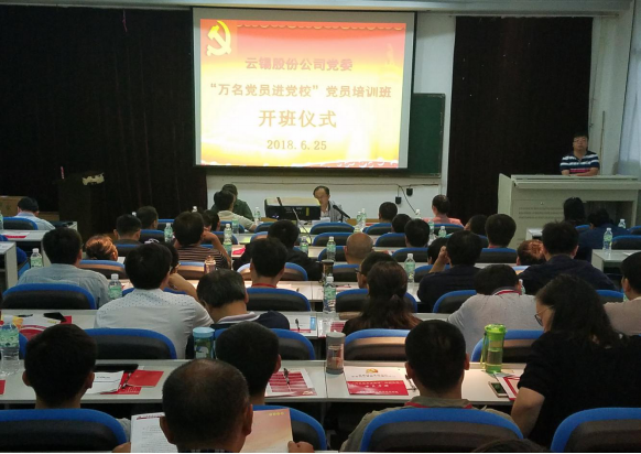 2018年6月25日,云锡股份公司党委,在云锡党校举办了“万名党员进党校”第七期党员培训班,云锡股份公司组织人力资源部副部长龙辉同志、党校党群系统培训部业务主办严红同志,参加了云锡股份公司“万名党员进党校”第七期党员培训班开班典礼,云锡股份公司组织人力资源部副部长龙辉同志作动员讲话。