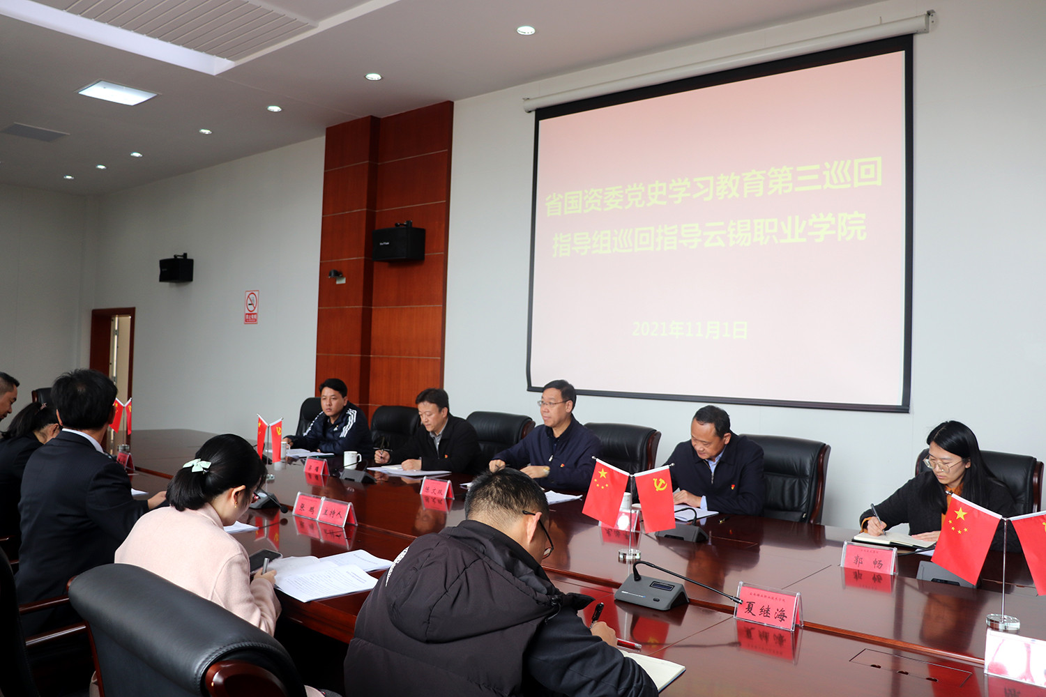 11月1日,省国资委党史学习教育第三巡回指导组组长陈文双一行深入云锡职院调研指导工作,对学院党史学习教育开展情况给予肯定,认为云锡职院党史学习教育与高职教育教学达到了双融合、两促进的效果,并对学院党史学习教育提出了四点要求:一是及时查漏补缺。要结合党史学习教育开展情况,坚持问题导向,对尚未做到位的工作重点关注、逐项攻克,确保党史学习教育每项工作都落实到位。二是注重总结提炼。对于前阶段形成的成果,尤...