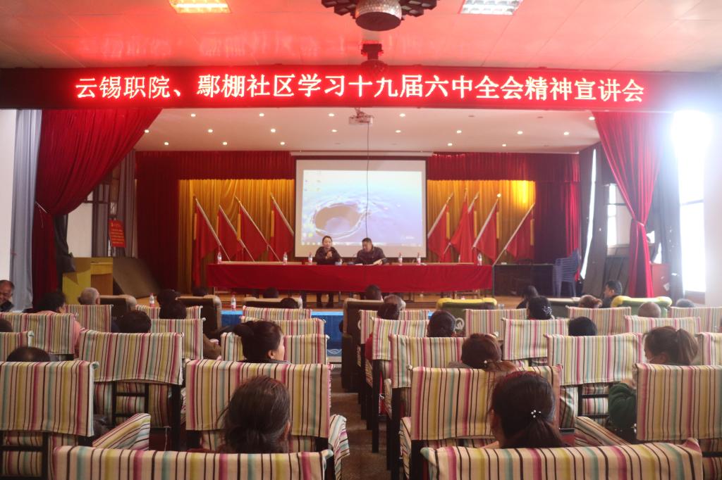11月18日,学院与鄢棚社区联合开展主题党日活动,让党的十九届六中全会精神“飞入寻常百姓家”。党的十九届六中全会胜利闭幕后,思学院组织政部教师通过网络收听收看、集体研讨、参加培训等方式,深刻学习和领会全会精神,为党的创新理论进校园、进班级、进社区、进头脑作了充分准备。在鄢棚社区,思政部教师朱秋静以《不忘初心 牢记使命 深入学习党的十九届六中全会精神》为题,从党的十九届六中全会概况、审议通过的两个决议...