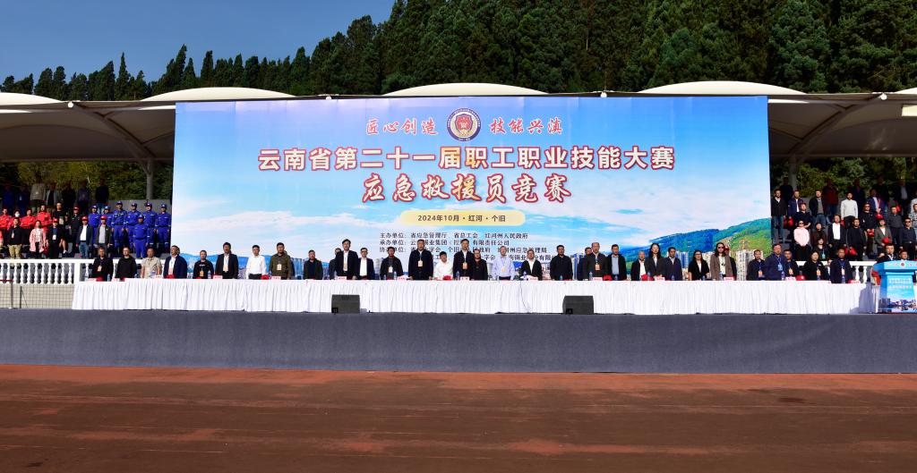 10月24日上午,伴随着雄壮的国歌声,云南省第二十一届职工职业技能大赛应急救援员竞赛在学院足球场举行。省总工会党组成员、副主席李琦宣布大赛开幕。控股公司党委副书记、副董事长、总经理韩守礼致辞,表示云锡将发扬认真负责、热情周到的工作作风,全力做好服务保障,为竞赛顺利举行创造良好环境。希望参赛队员严格遵守比赛规则,努力展示技能和才华,以精湛的技术、高超的技能争取优异成绩,赛出风格、赛出水平。省应急管理...