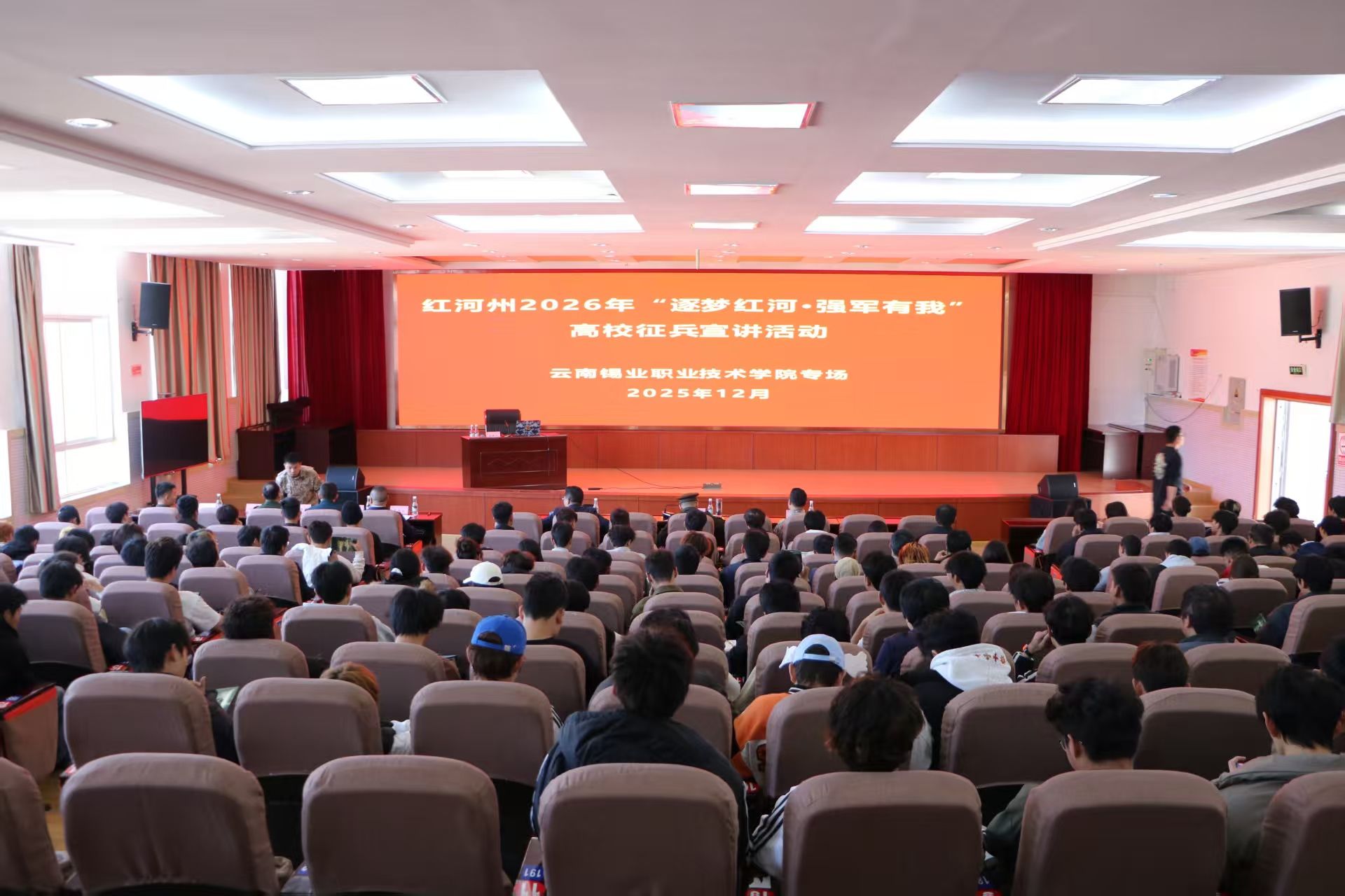 12月11日,红河州征兵宣讲团走进云锡职业学院,以“逐梦红河·强军有我”为主题开展征兵政策宣讲活动。