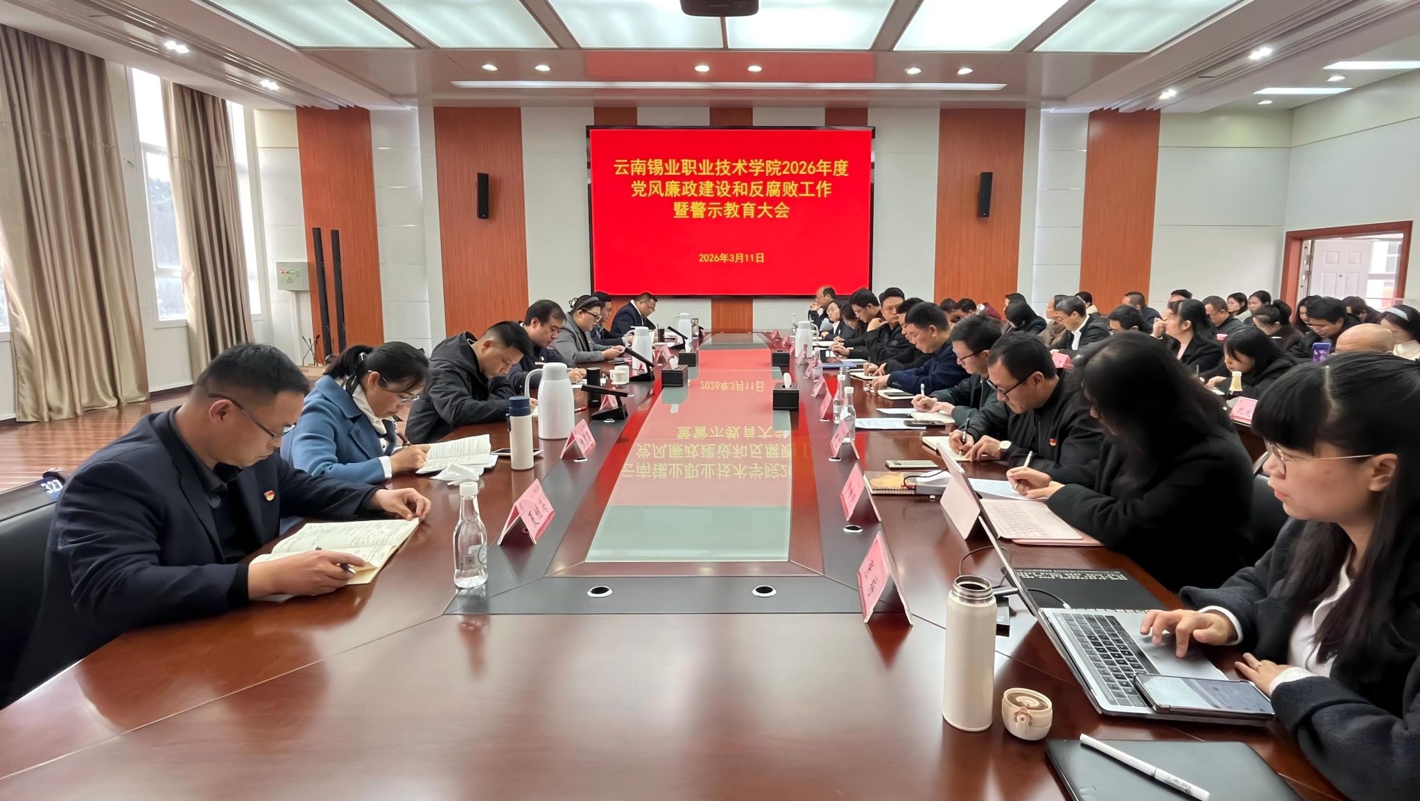 3月11日,学院在大会议室召开2026年度党风廉政建设和反腐败工作会暨警示教育大会。