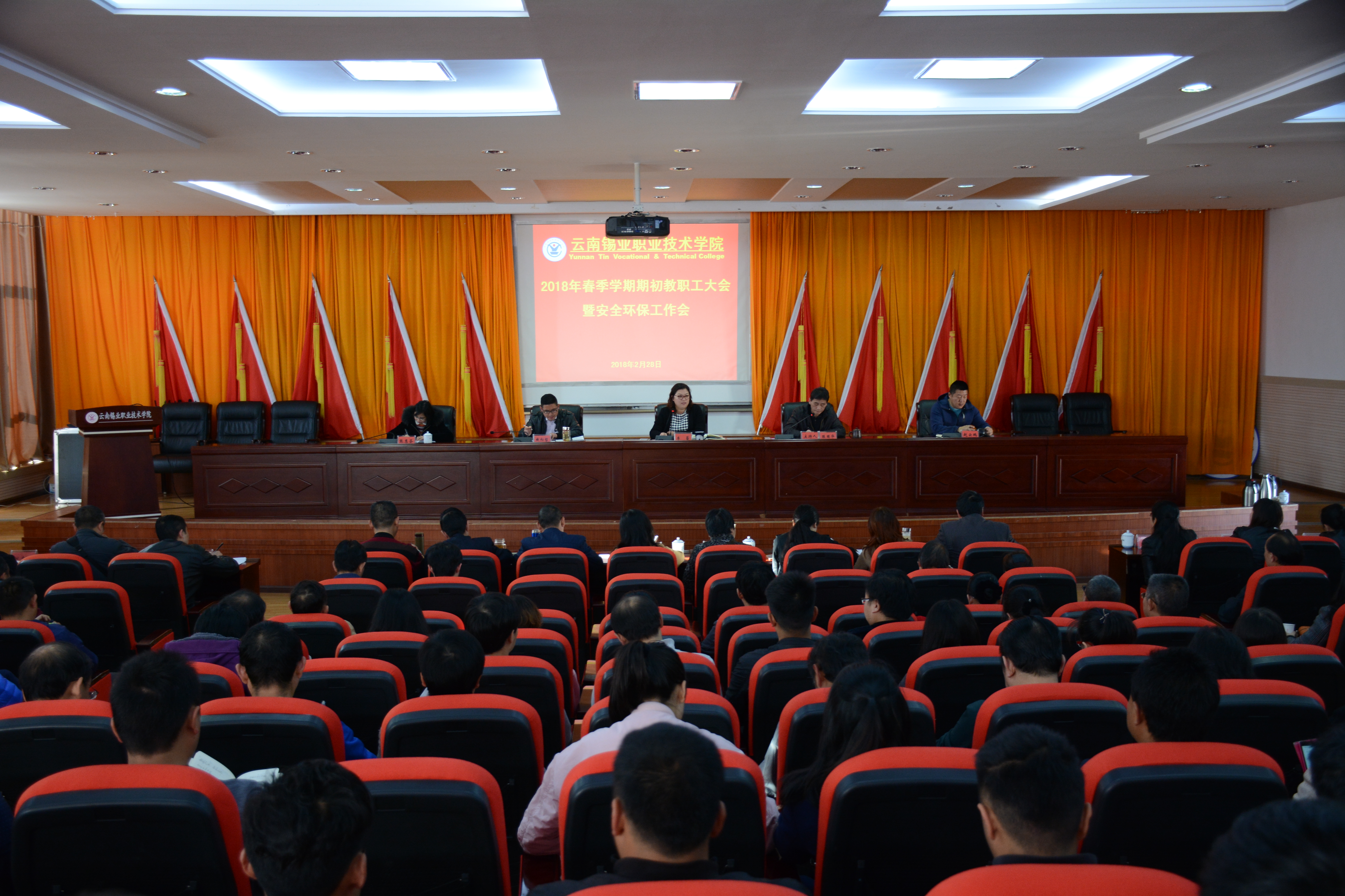 2月28日上午,职业学院在508报告厅召开2018年春季学期期初教职工大会暨安全环保工作会。学院179名教职工参加会议,副院长陈国华主持会议。会上,学院党委书记李蕾简要汇报了学院2017年主要工作成效,深入分析了存在的问题和不足。结合学院实际,围绕控股公司两大目标、三大重点任务,对2018年学院改革发展工作进行了11项工作安排和部署,确保实现2018年生产经营目标:一是以党的十九大精神为统领,统一思想,坚定信心;二是认...