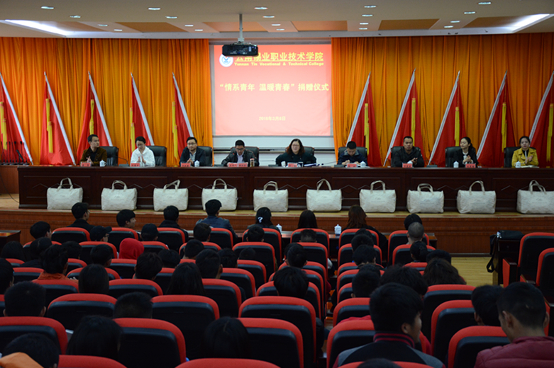 3月8日,职业学院在508报告厅举行“情系青年,温暖青春”爱心捐赠仪式,对学院10名贫困学生进行爱心资助并对6名“学雷锋”的先进大学生进行了表彰。学院党委书记李蕾、控股公司团委书记、工会副主席张弛、锡业股份团委书记王战蒙出席捐赠仪式,云锡控股公司有关单位团委干部及学院相关部门负责人、大学生社团代表和学生代表参加了此次活动。仪式由学院副院长曲向哲主持。仪式上,张弛致辞,他代表云锡控股公司团委向长期以来对公...