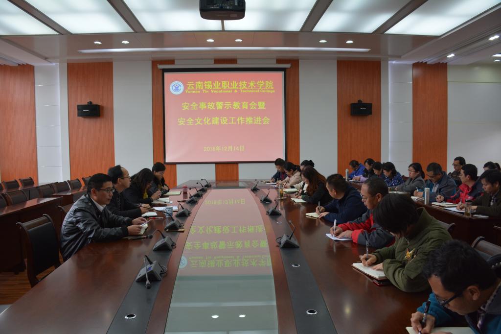 为大力推进学院安全文化建设,实现学院安全发展、和谐发展、规范发展和高效发展,12月14日下午,职业技术学院在507大会议室开展了安全事故警示教育,召开了校园安全文化建设工作推进会。学院党委书记张鹏,党委副书记、院长李蕾,党委副书记、工会主席刘青及各部门负责人及安全员参加会议。会议由分管安全的学院副院长曲向哲主持。会议传达学习了控股公司关于安全工作及安全文化建设的相关文件及会议精神,分析了目前学院安全形...