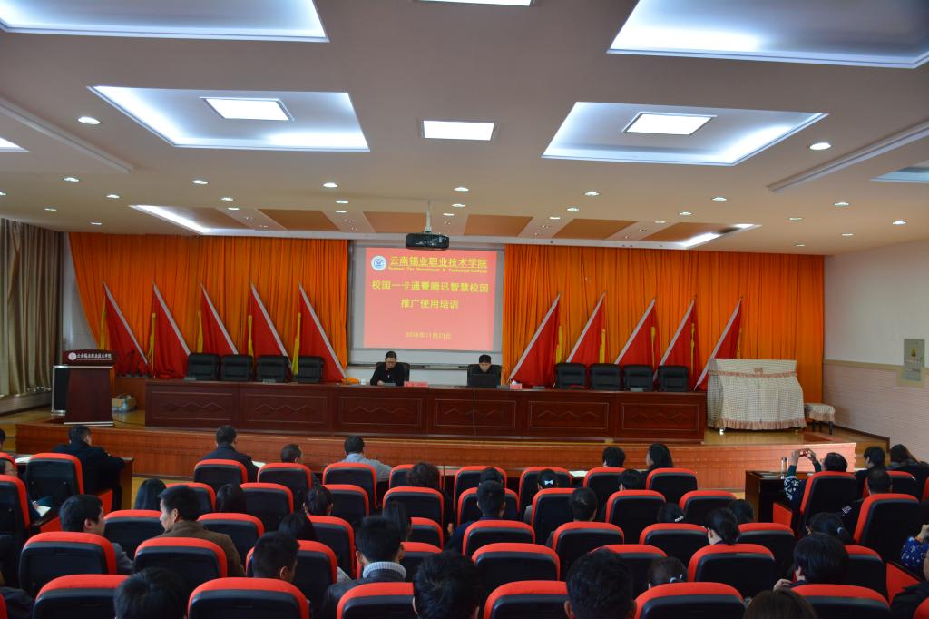 为加快学院信息化建设工作步伐,更好地为广大师生的工作、学习和生活提供优质便捷的服务,11月23日下午,职业技术学院在508报告厅举行“校园一卡通暨智慧校园”推广使用培训会。学院全院教职工共174人参加培训会,培训会由学院党委副书记、院长李蕾主持。腾讯公司云南项目组李华工程师对“腾讯智慧校园”中的班级管理、财务助手、行政助手、考勤及审批、教育教学服务、校友会、校园云卡、精品云课、企业小助手、瑞格心理教育信...