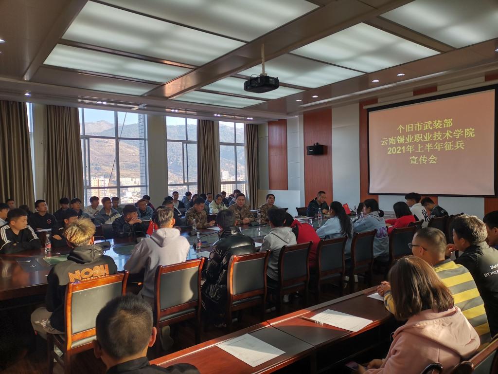 1月5日下午,为深入贯彻落实省征兵办公室关于大学毕业生征兵工作的指示精神,鼓励优秀学子积极参军入伍、施展才干,学院武装部联合个旧市武装部、云锡控股公司党委工作部共同举办了2021年征兵宣传活动。个旧市委常委、市人武部部长王建伟,学院党委书记张鹏,党委副书记、工会主席、纪委书记刘青出席活动。启动仪式上,王建伟进行了征兵动员讲话。今年,面对突如其来的疫情和复杂多变的国际国内形势,广大青年学子参军热情不减...